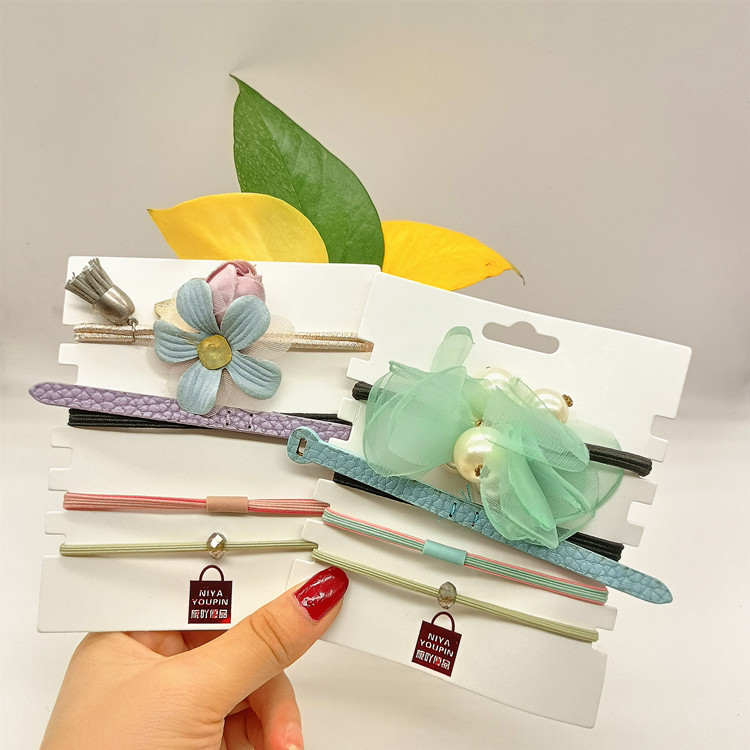 一卡4根裝 簡約森系超仙溫柔甜美發(fā)飾女 皮筋皮套頭飾六C4-2-4