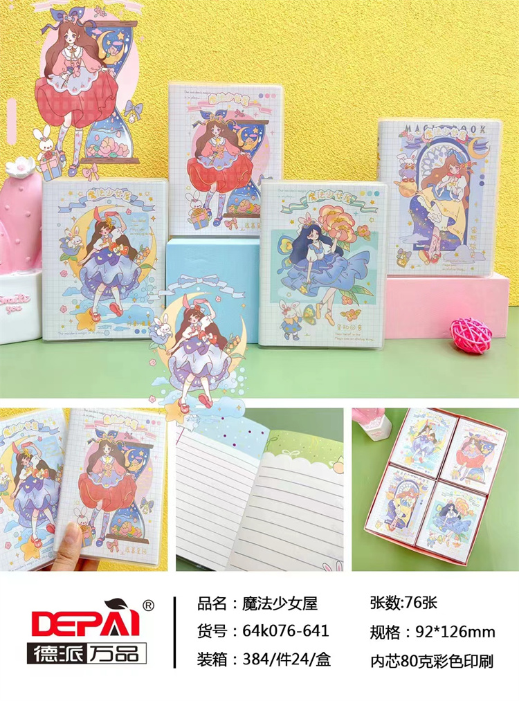 64K076-641德派萬(wàn)品 魔法少女屋 筆記本 記事本 卡通可愛(ài)小本子 384/件六B37-3-2