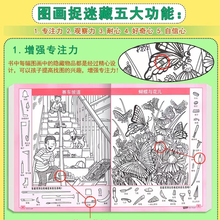 圖畫(huà)捉迷藏益智兒童智力開(kāi)發(fā)書(shū)籍視覺(jué)挑戰(zhàn) A33-3-2