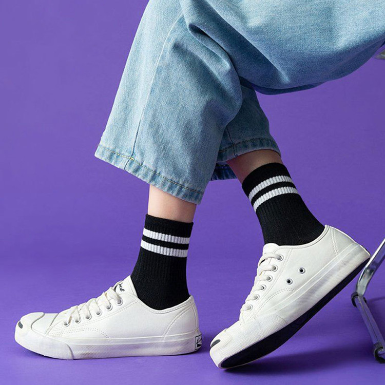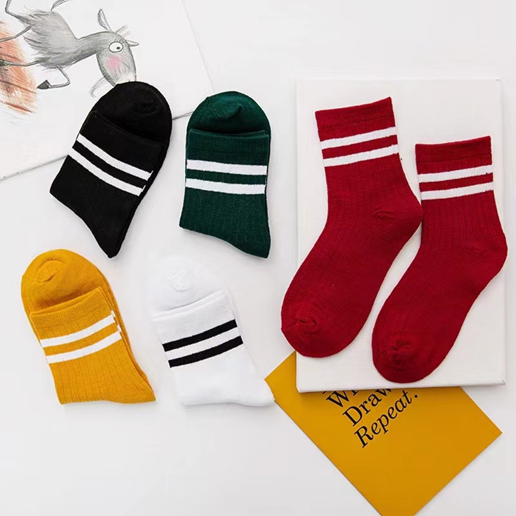 簡(jiǎn)約百搭二條杠韓版ins條紋棉襪 A18-2-3