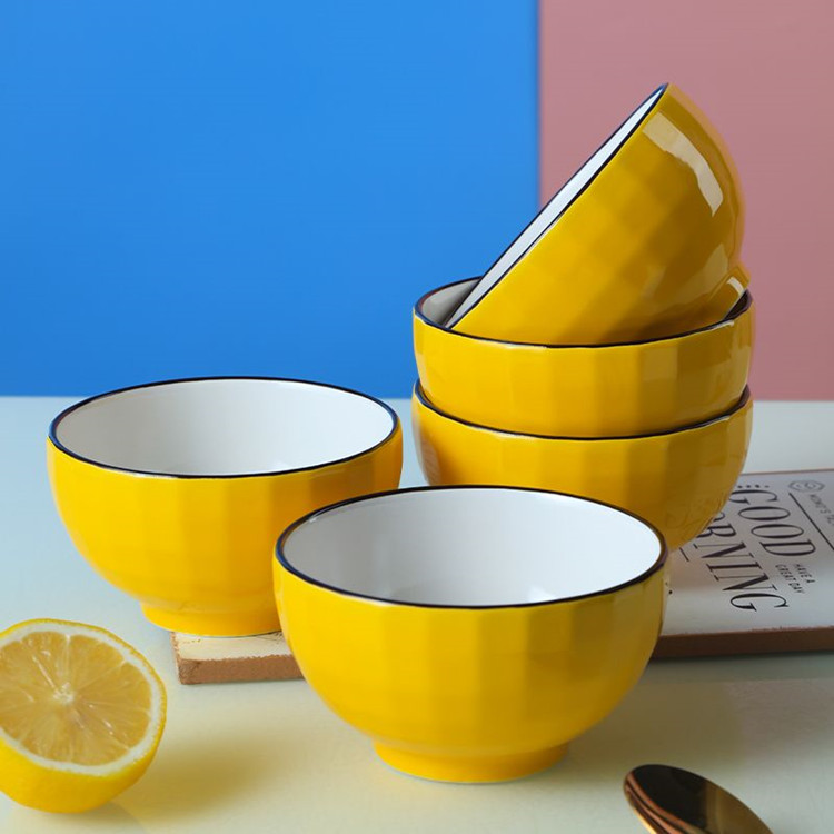 黃色--4.5寸方鉆石碗輕奢家用陶瓷米飯碗 90/件 D1-1-1